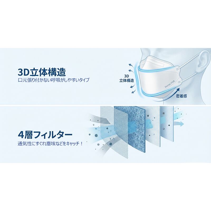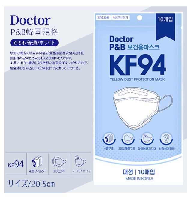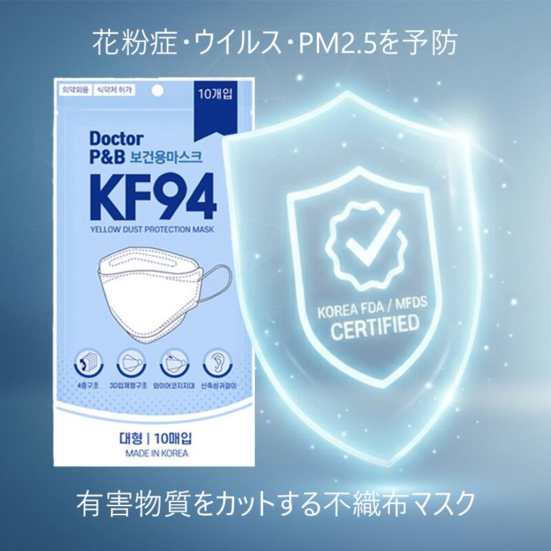 韓国認証 KF94 4層フィルター 不織布マスク P&B