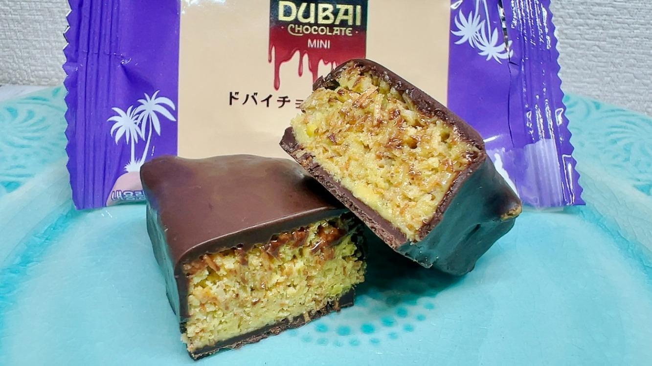 ■原材料:ココアバター代替品(硬化パーム油) カダイフ [小麦粉、精製水、コーンスターチ(遺伝子組み換えトウモロコシ含有の可能性あり)、塩、大豆油、変性でんぷん、大豆レシチン(遺伝子組み換え大豆含有の可能性あり)] ピスタチオクリーム [ピスタチオ、ウコン色素、クチナシ青色素、ピスタチオオイル] 粉末砂糖、砂糖、変性でんぷん、全脂粉乳、マルトデキストリン、ココアパウダー、ブドウ糖、大豆レシチン(遺伝子組み換え大豆含有の可能性あり)、ココアバター、塩、香料 *アレルゲン: 小麦、大豆、牛乳含有